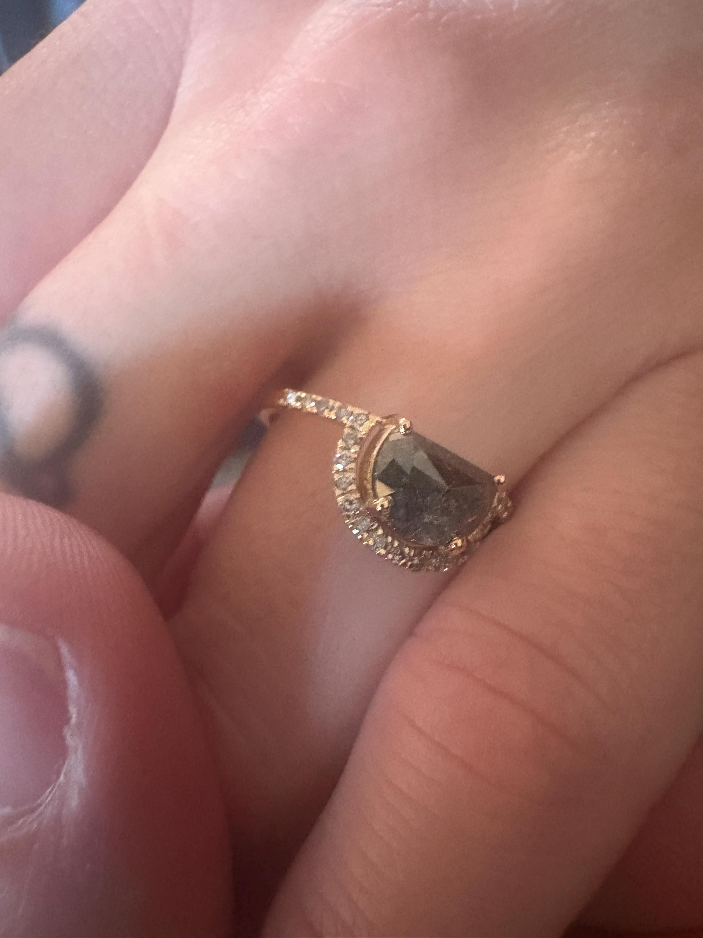 The ring is beautiful and looks exactly how it did on the site if not better. The package came safely and in a cute little box. There was some delays in it getting here, but thatโs more on the USPS than it is the seller. They got back to me as soon as they could if I had any questions and most importantly she said yes!